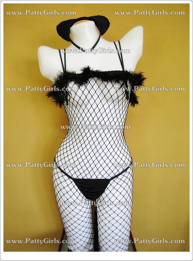 K316 ชุดตาข่ายแฟนซี ชุดตาข่ายมาในสไตล์ชุดคอสเพลย์นางแมวเซ็กซี่ ตัวชุดเป็นตาข่ายช่องกว้างตกแต่งขนปุยตรงขอบบนช่วงล่างเปิดเป้า มาพร้อมที่คาดผมหูแมวและจีสตริงหางแมวตามรูปถ่ายสินค้าจริงเลยค่ะ